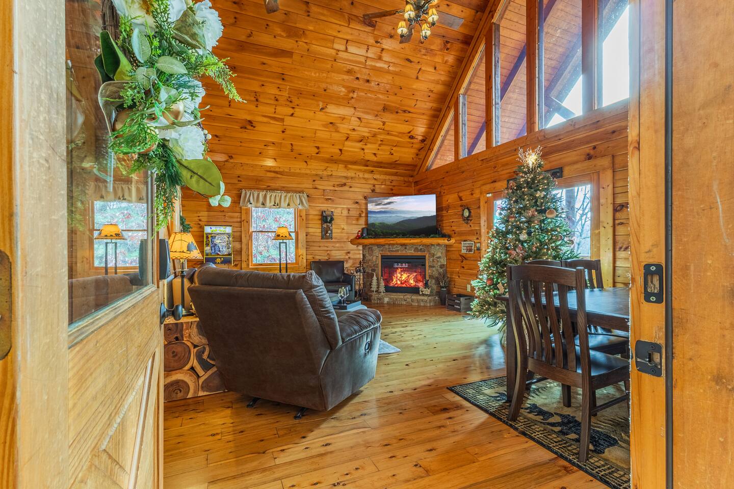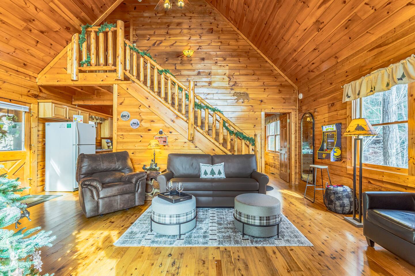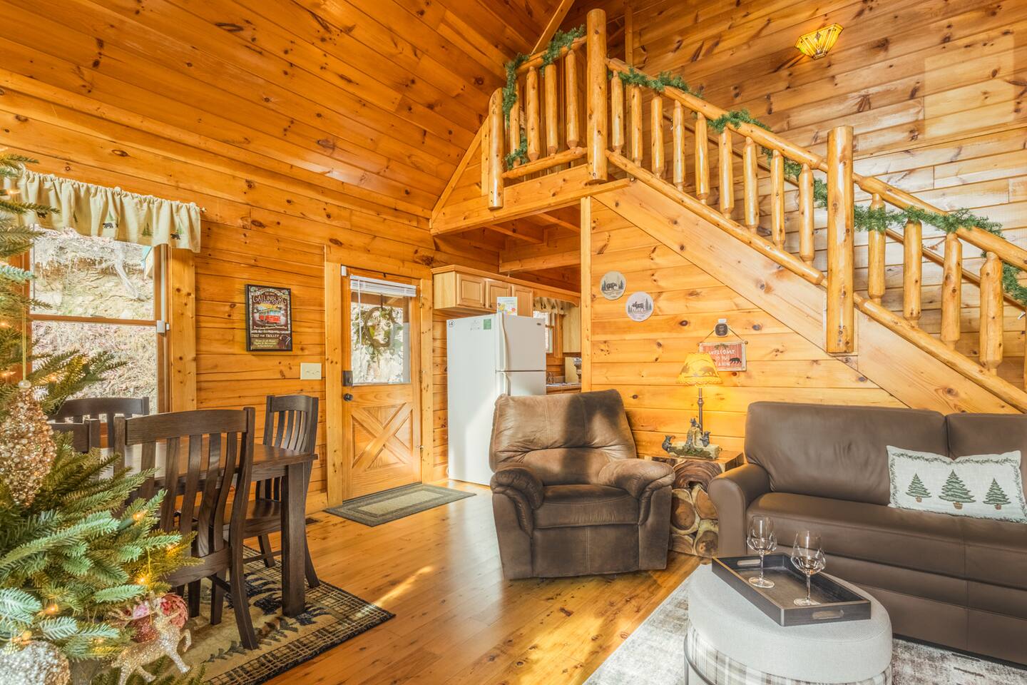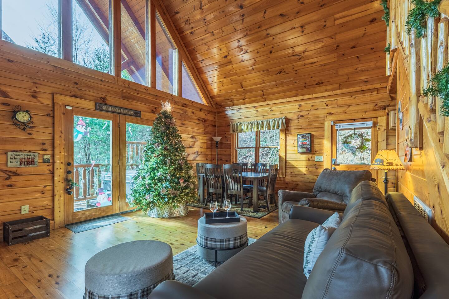 • We will be decorated for the Christmas holiday season during the first week of November to mid-January, adding a festive touch to your stay! • Self check-in is with a smart lock. You will receive your unique code 3 days prior to check-in or sooner depending on your check-in date. • There is parking on the driveway for 2 vehicles. • This cabin sleeps 6 guests maximum. • The cabin is accessible by paved roads the whole way. We recommend using a four-wheel drive vehicle during winter months. • We welcome children, but please note that our space is not child-proof, so supervision is necessary to ensure their safety. • We do have a exterior security camera overlooking the entryway and one overlooking the driveway. There is a ADT security system in the kitchen with the camera disabled.