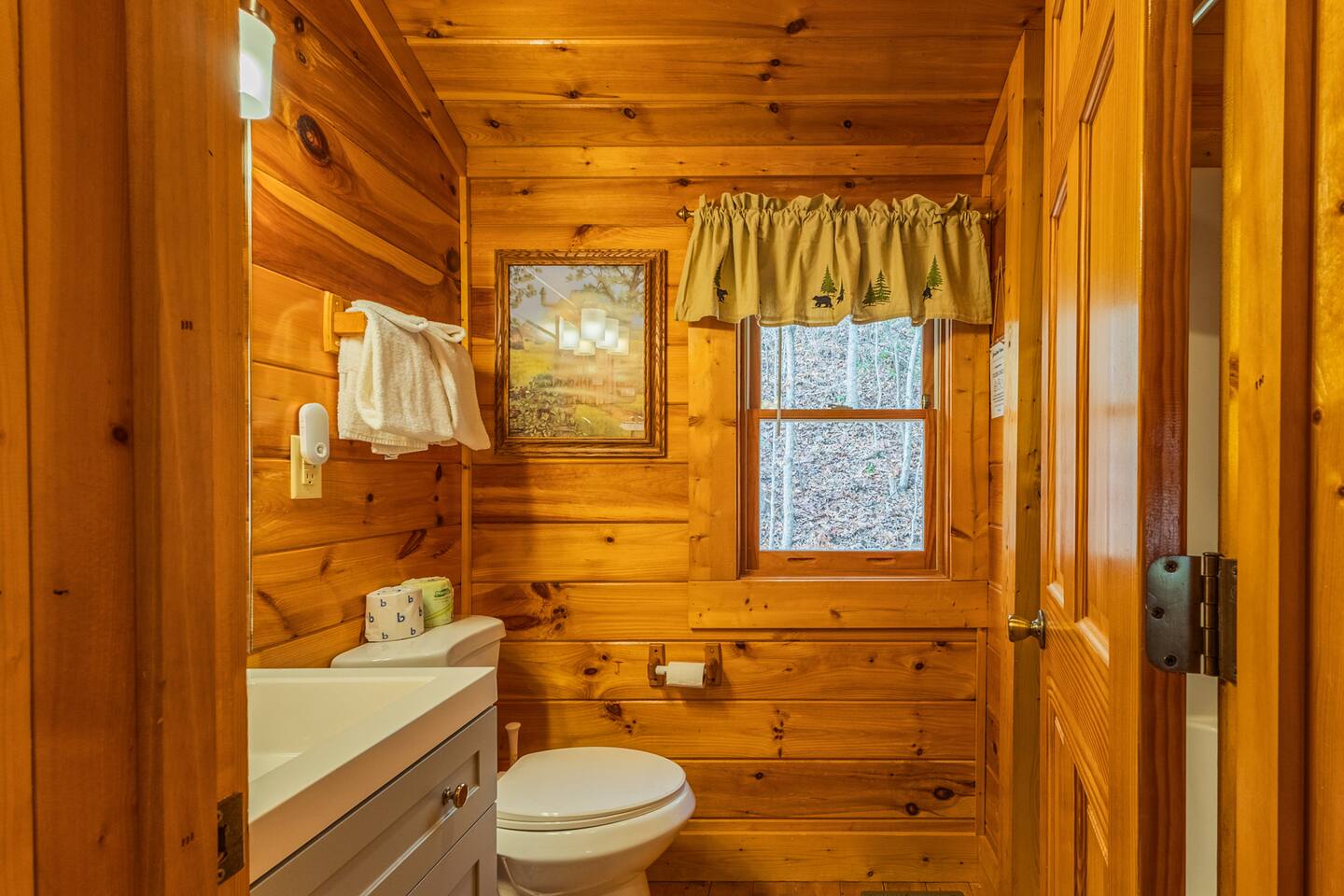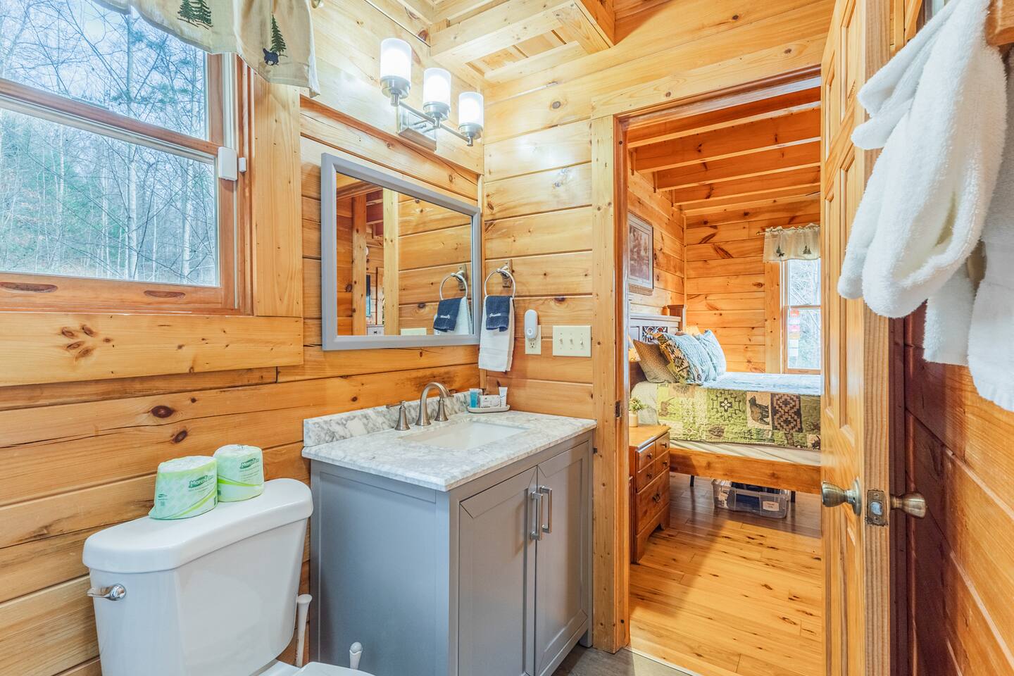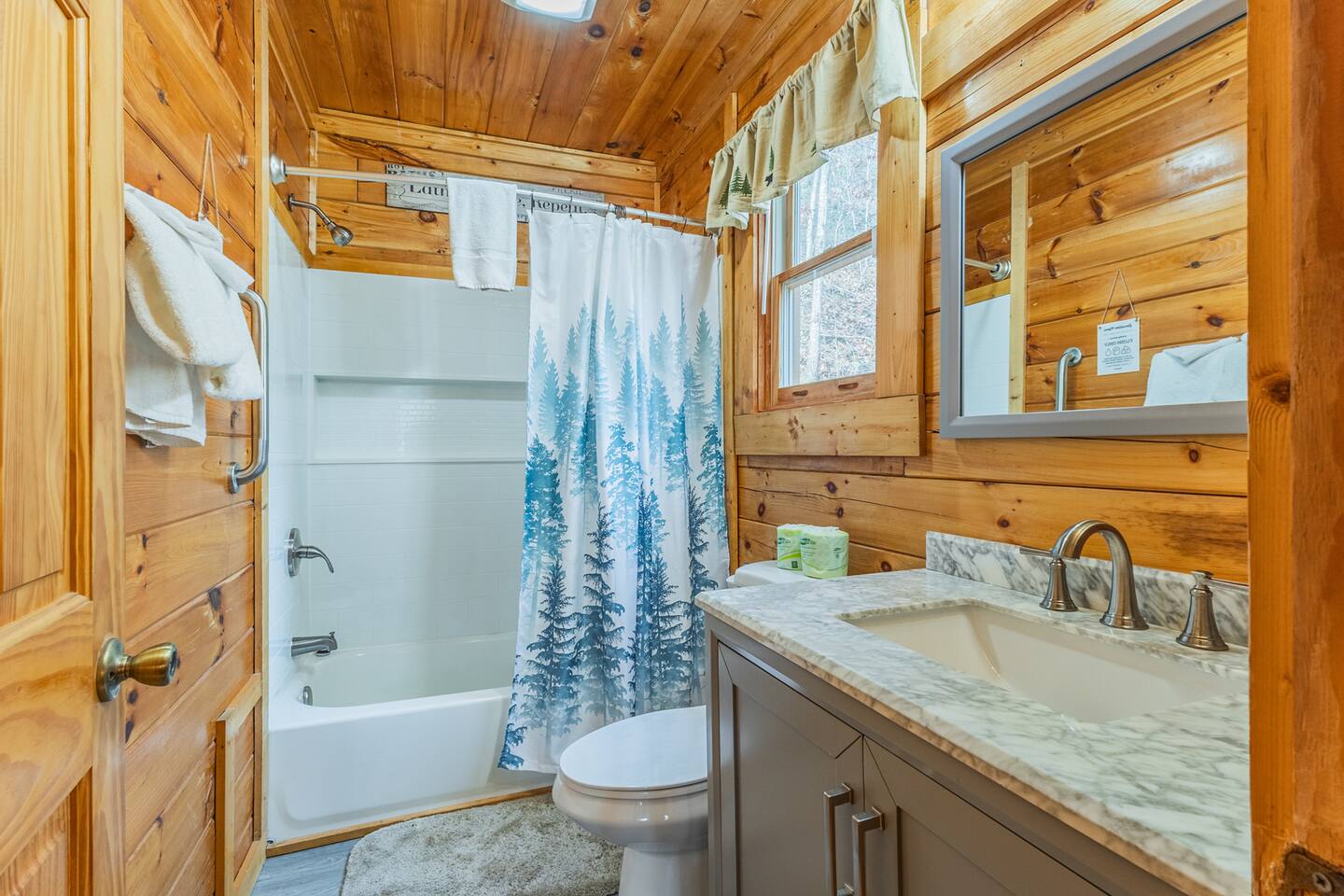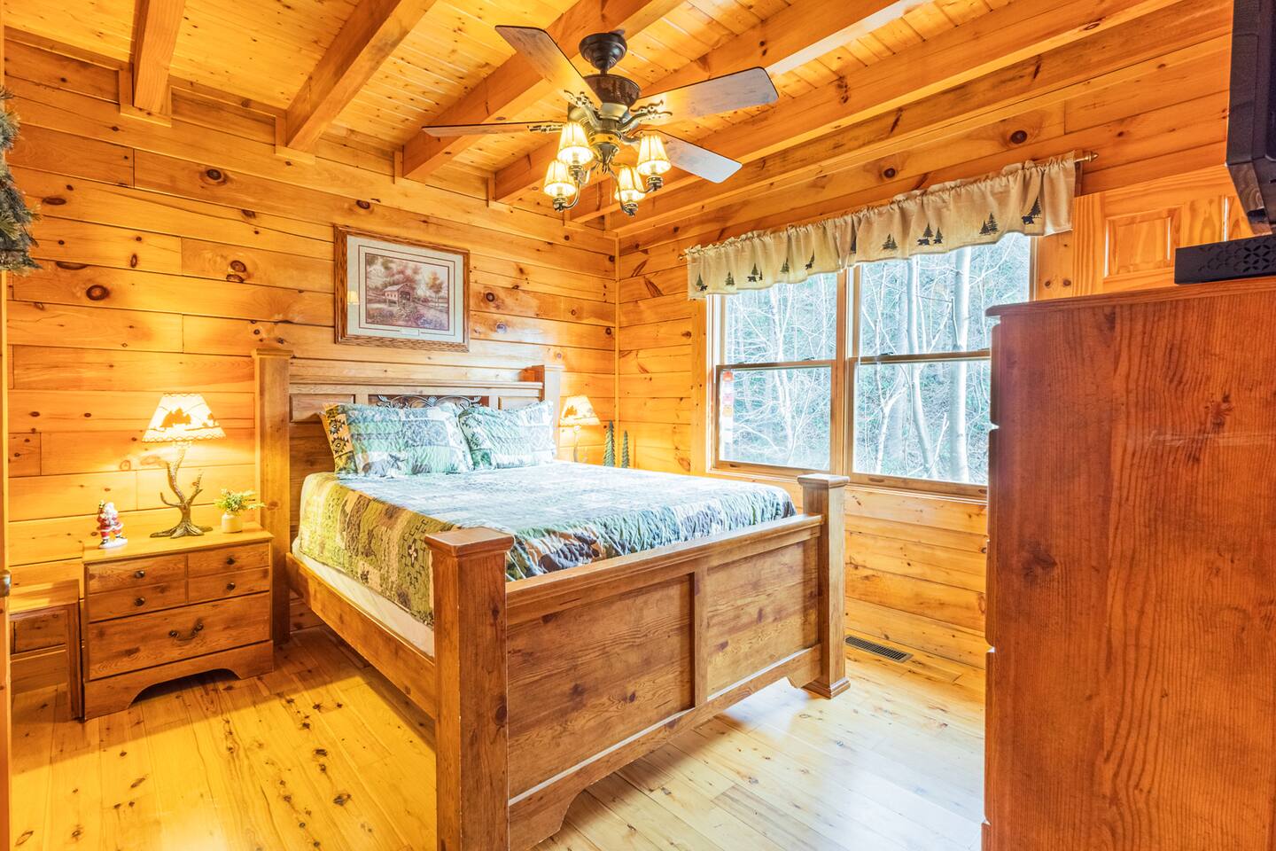 • We will be decorated for the Christmas holiday season during the first week of November to mid-January, adding a festive touch to your stay! • Self check-in is with a smart lock. You will receive your unique code 3 days prior to check-in or sooner depending on your check-in date. • There is parking on the driveway for 2 vehicles. • This cabin sleeps 6 guests maximum. • The cabin is accessible by paved roads the whole way. We recommend using a four-wheel drive vehicle during winter months. • We welcome children, but please note that our space is not child-proof, so supervision is necessary to ensure their safety. • We do have a exterior security camera overlooking the entryway and one overlooking the driveway. There is a ADT security system in the kitchen with the camera disabled.