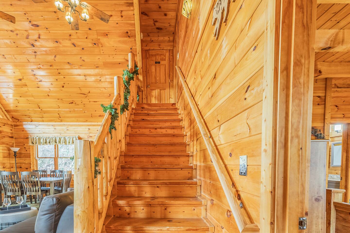 Just 3 miles from the heart of Gatlinburg, "Awesome Escape," located on a peaceful dead-end road in a cabin resort, provides an escape from the city crowds while being close to all the action. This beautiful 2BR/2BA cabin offers a serene setting. From the moment you walk in, the high vaulted windows welcome you home. The entry level features the kitchen, dining area, living room, queen en suite, and a mountain view from the balcony. The upper floor includes a king en suite.