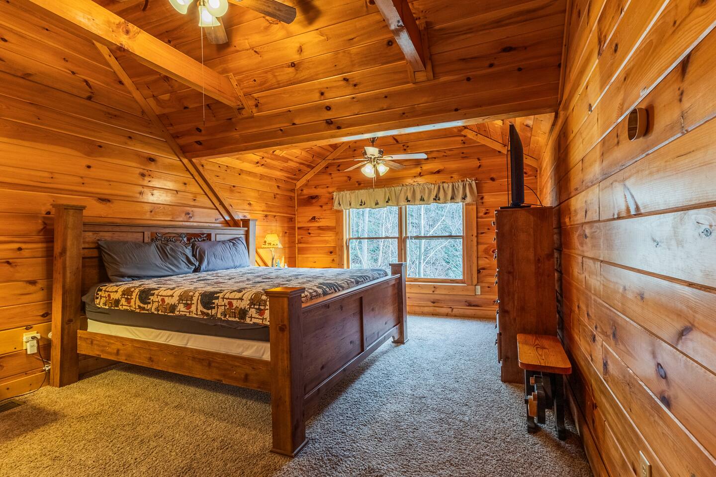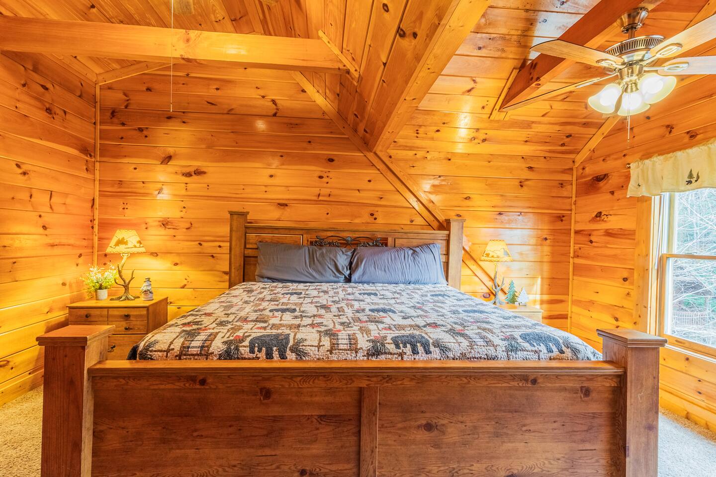 Black Bear Falls Resort is a beautiful log home community located in an ideal location -- far enough from the city's crowds while still being close to all the action. Like many resorts in the area, cabins are generally located near one another. However, our cabin is situated on a peaceful dead-end road offering more privacy. There are a couple neighboring cabins in and others scattered throughout the resort. Our area is usually quiet, though you may occasionally hear sounds from other cabins, as we are nestled in the mountains. Nonetheless, the design of our cabin ensures a feeling of complete privacy once you're inside.
